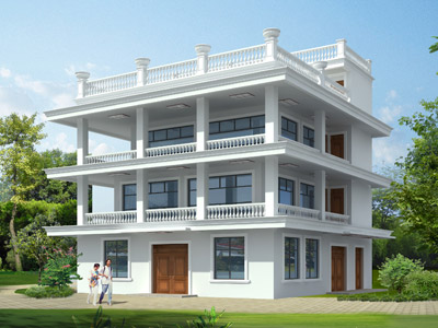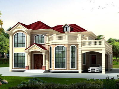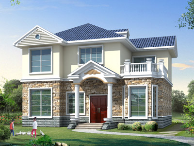 ZH006新農村二層帶露臺別墅設計外觀效果圖,鼎川建筑別墅私