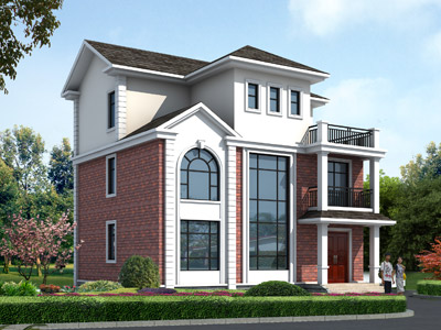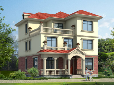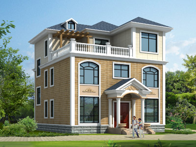 D0215新農村三層帶露臺小別墅設計圖外觀,農村兩層半別墅定