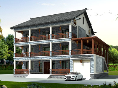 E0221三層帶車庫中式房屋設計圖紙效果圖,鼎川建筑中式別墅
