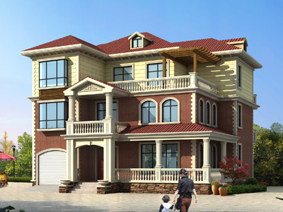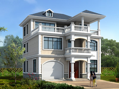 D0252歐式三層帶車庫別墅外觀效果圖,鼎川建筑私人定制別墅