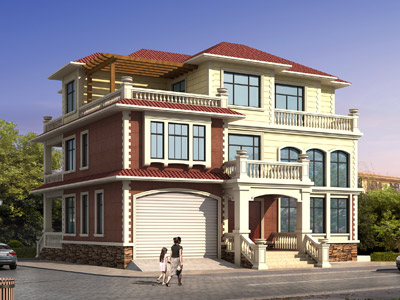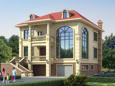 L0227歐式三層帶車庫別墅設計外觀,鼎川建筑三層別墅私人定