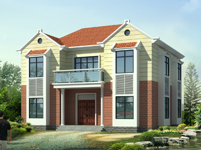 L0221農村兩層帶露臺小別墅外觀效果圖,農村二層別墅設計圖
