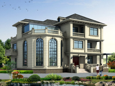 HY014漂亮的歐式三層帶涼亭別墅設計效果圖,鼎川建筑別墅私