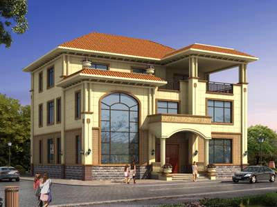 L0215三層歐式別墅設計圖外觀效果圖,鼎川建筑別墅私人定制