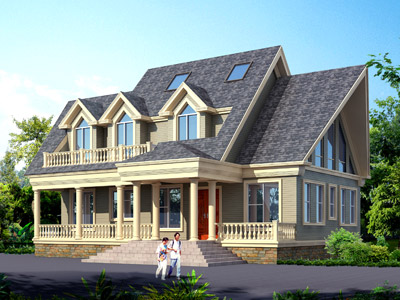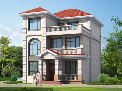 L0312A三層美式小別墅外觀效果圖,三層別墅私人定制設(shè)計(jì)圖