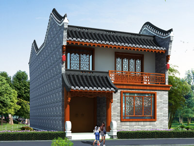 YG013中式二層帶陽臺(tái)房屋設(shè)計(jì)圖紙效果圖,中式小別墅設(shè)計(jì)圖