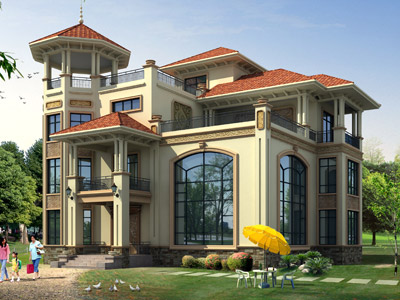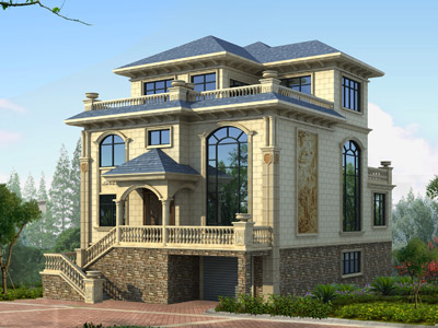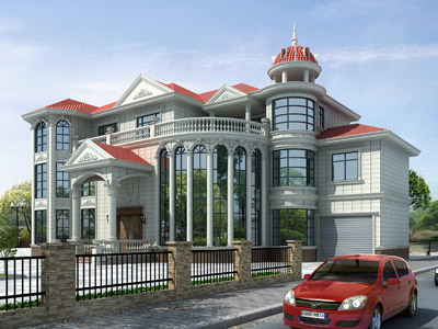 E0142豪華三層歐式別墅設(shè)計(jì)外觀效果圖,鼎川建筑私人定制歐