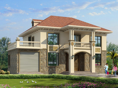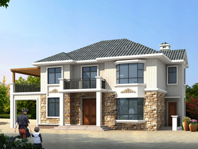 L0312B漂亮的二層小別墅圖紙效果圖,農(nóng)村二層別墅設(shè)計(jì)