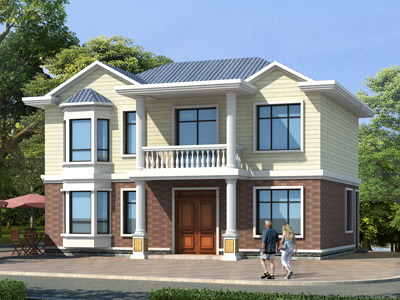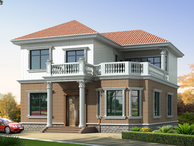 M0236二層帶露臺(tái)小別墅設(shè)計(jì)外觀效果圖,農(nóng)村二層自建房屋設(shè)