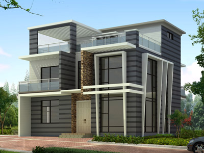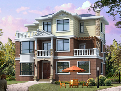 L065三層帶露臺別墅設計外觀效果圖,三層別墅設計