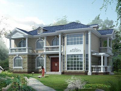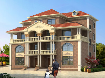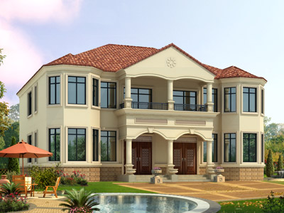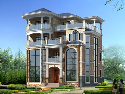 E042歐式三層帶露臺別墅圖紙效果圖,復式樓別墅設計