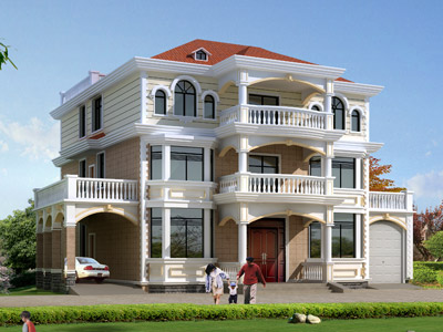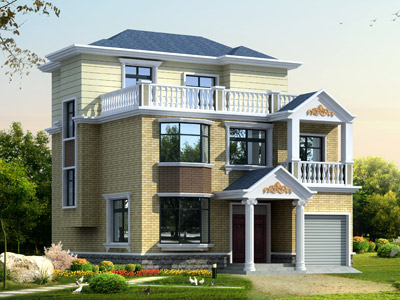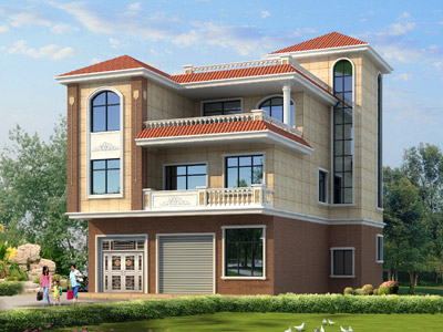 W0125新農村三層帶車庫別墅外觀效果圖,三層別墅設計圖