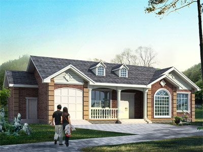M0162一層帶車庫別墅外觀效果圖,農村一層別墅設計