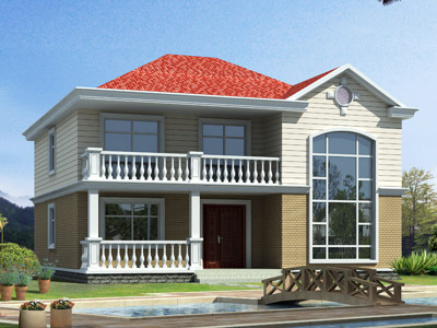 M0127獨特的二層農村小別墅設計圖,兩層小別墅外觀效果圖