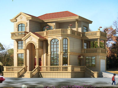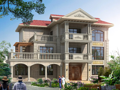 M093漂亮的歐式三層豪華別墅設計外觀效果圖,三層別墅設計圖