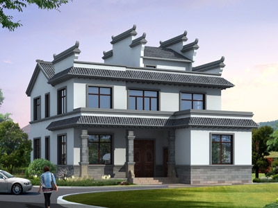 M0155漂亮的兩層半徽派小別墅設計圖,中式別墅設計外觀效果