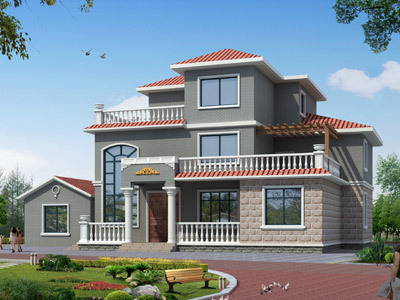 L090三層帶露臺農村別墅設計效果圖,三層別墅設計