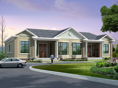 E006一層雙拼別墅設計效果圖,農村一層雙拼自建房圖紙效果圖