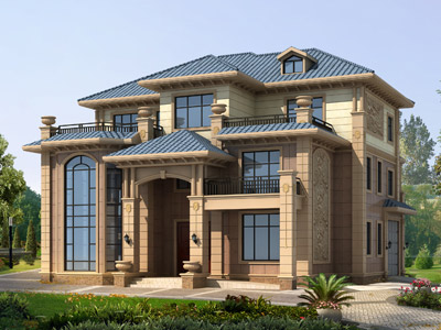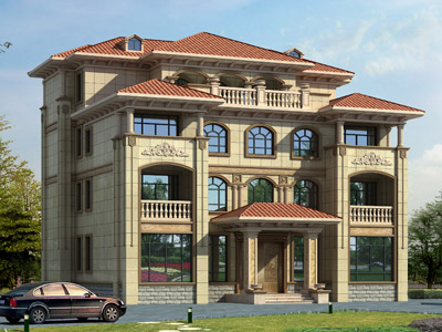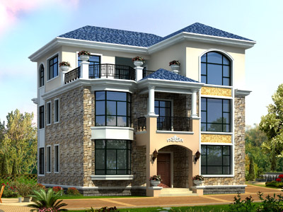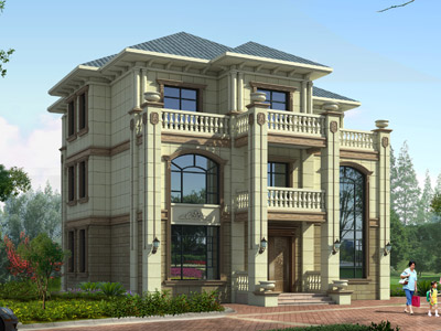 ZH015三層鄉(xiāng)村別墅設(shè)計(jì)圖外觀效果圖,歐式別墅設(shè)計(jì)圖紙效果