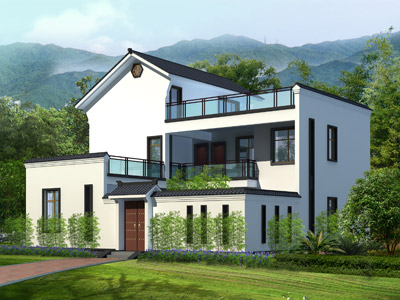 JL028三層中式徽派別墅圖紙外觀效果圖,新農(nóng)村徽派建筑房屋
