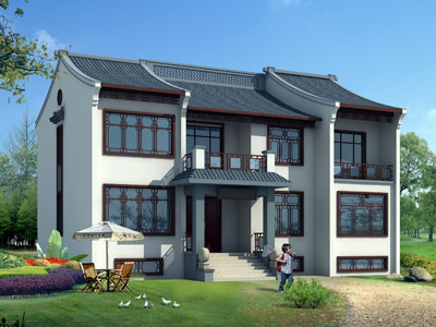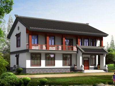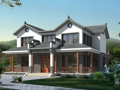 JL030中式二層自建房屋設(shè)計(jì)圖效果圖,鼎川建筑二層中式別墅