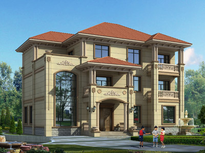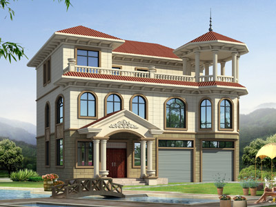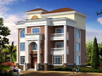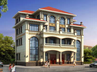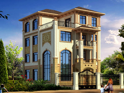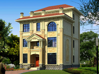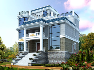 ZA008三層歐式別墅外觀效果圖,鼎川建筑三層別墅私人定制設