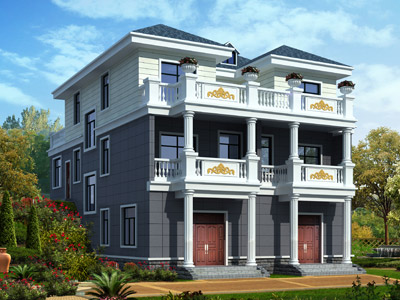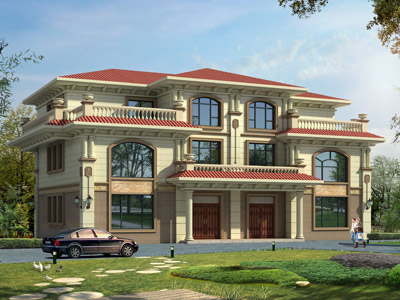 ZA007歐式豪華三層雙拼別墅設計外觀效果圖,鼎川建筑雙拼別