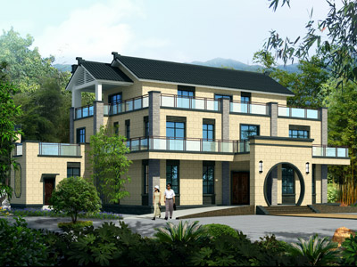YW001新中式三層別墅設計圖外觀效果圖,鼎川建筑新中式住宅