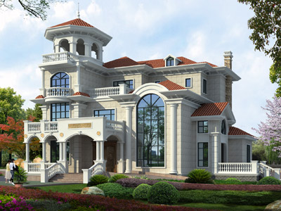 E090漂亮豪華的歐式三層別墅外觀效果圖,鼎川建筑私人定制別