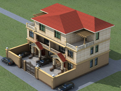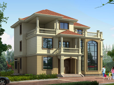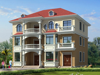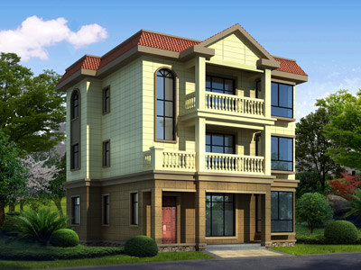 J0106復式三層別墅圖紙設計外觀效果圖,農村三層別墅私人定