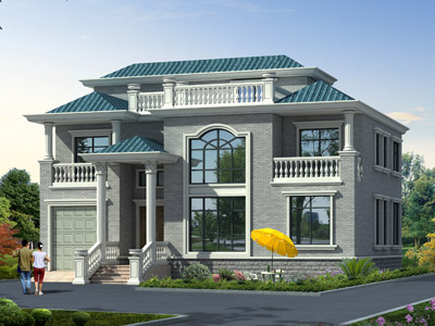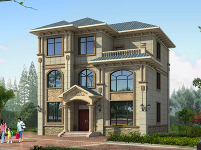 L0275三層帶露臺農村別墅設計外觀效果圖,農村三層歐式別墅