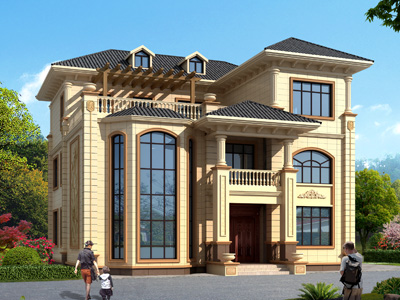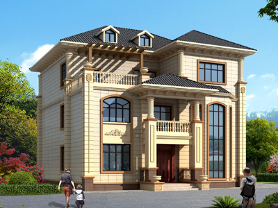 ZY035三層歐式別墅設計圖紙外觀效果圖,新農村自建別墅圖紙