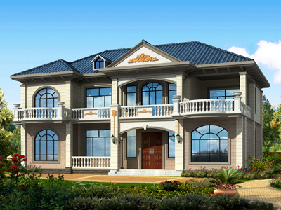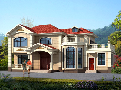 JL137漂亮的二層帶車庫歐式別墅設計圖紙外觀效果圖,鼎川建