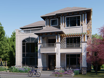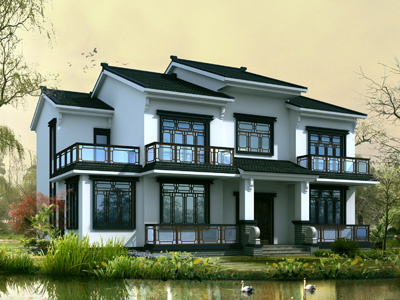 WQ020二層帶陽臺中式自建別墅設計圖效果圖,鼎川建筑新中式