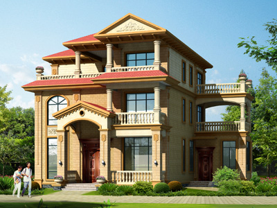 PL068農村三層歐式自建別墅設計圖紙外觀效果圖,新農村三層