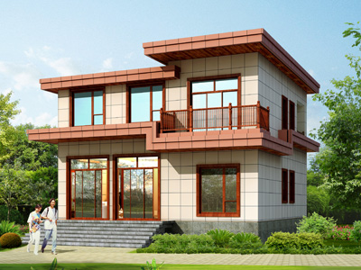 HC126二層平屋頂小別墅設計圖紙外觀效果圖,新農村兩層自建