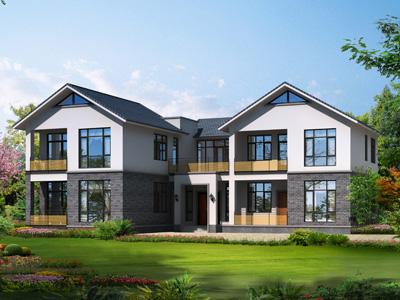 WQ030農村二層雙拼自建別墅設計圖效果圖,新農村兩層雙拼別