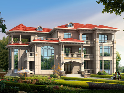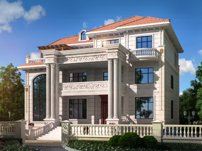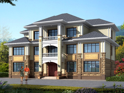 XC027大氣三層歐式別墅設計圖紙外觀效果圖,三層歐式別墅私