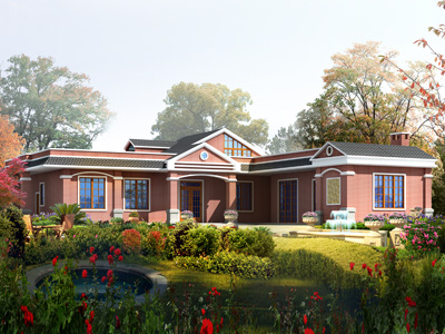 LX060漂亮的一層自建別墅設計圖紙外觀效果圖,鼎川建筑一層
