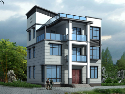 L0357三層帶閣樓自建別墅設計圖外觀效果圖,鼎川建筑三層帶