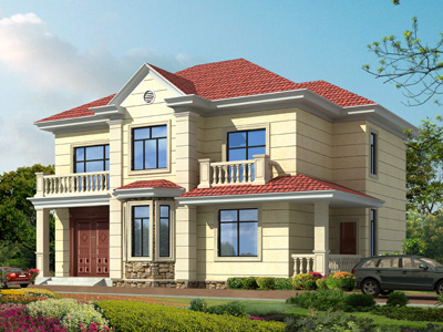 HC132新農村二層帶露臺自建別墅設計圖外觀效果圖,鄉村兩層
