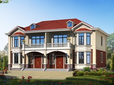 L0361三層雙拼自建農村別墅設計圖紙外觀效果圖,新農村三層