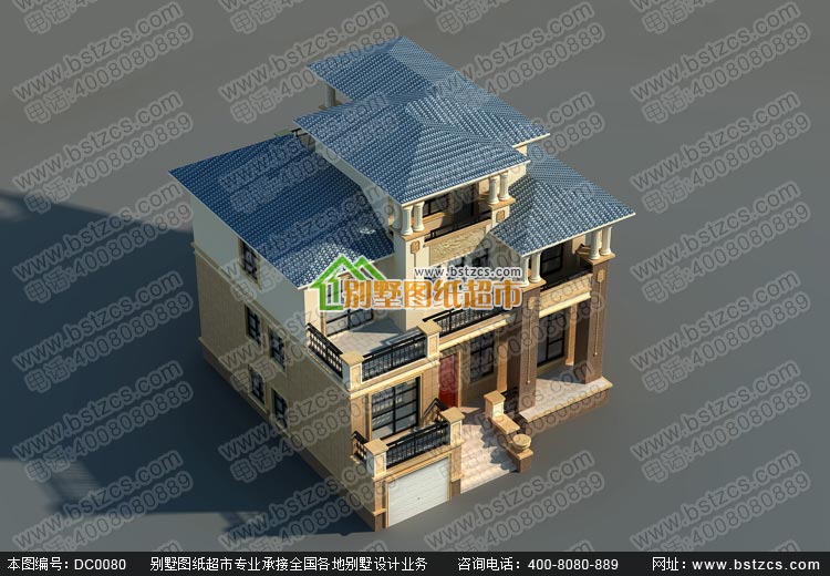 錯層歐式三層半別墅施工圖效果圖_別墅設計圖紙,新農村別墅,農村自建房設計