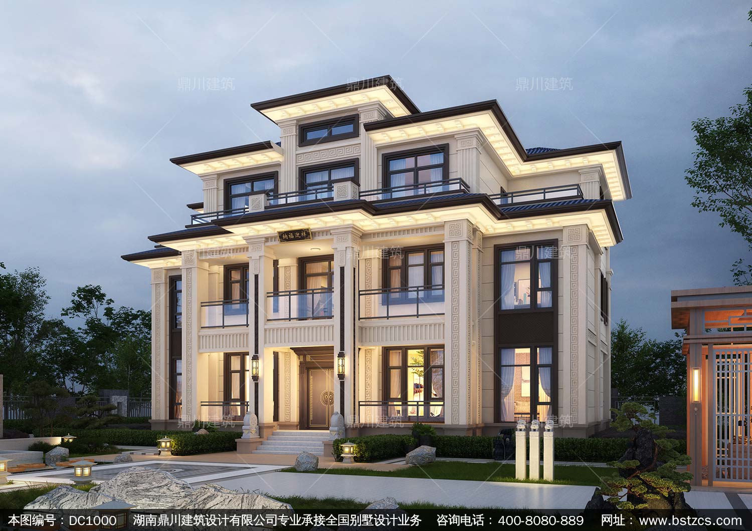 大氣新中式三層別墅全套施工圖紙及效果圖_新農(nóng)村別墅設(shè)計(jì),鼎川建筑