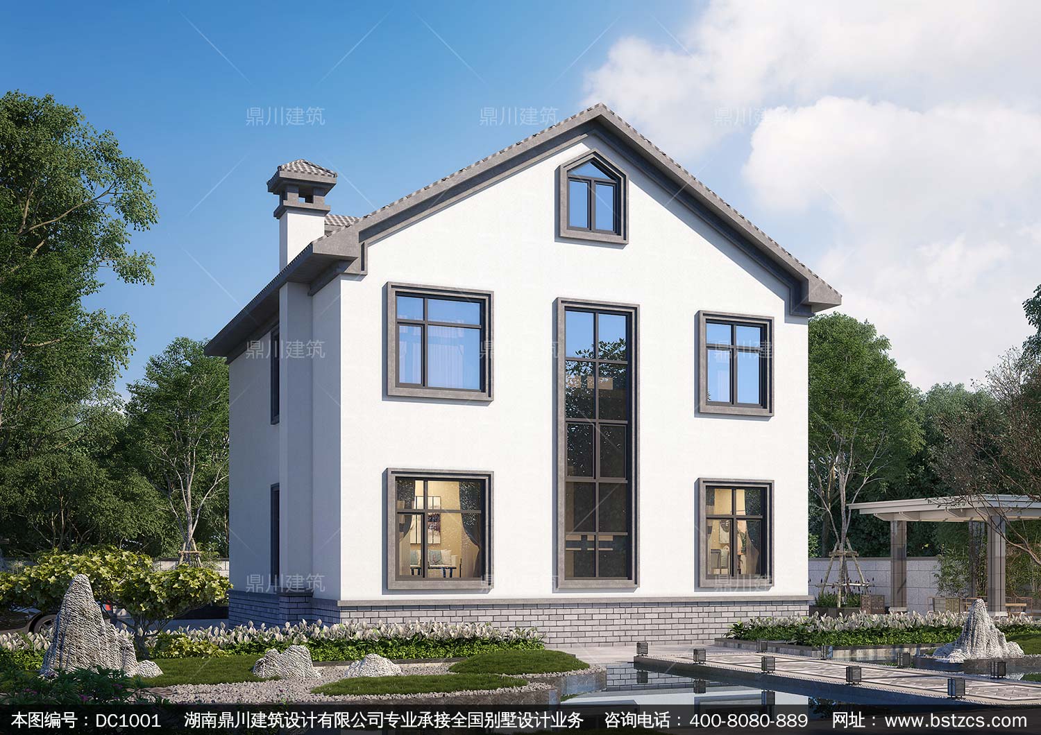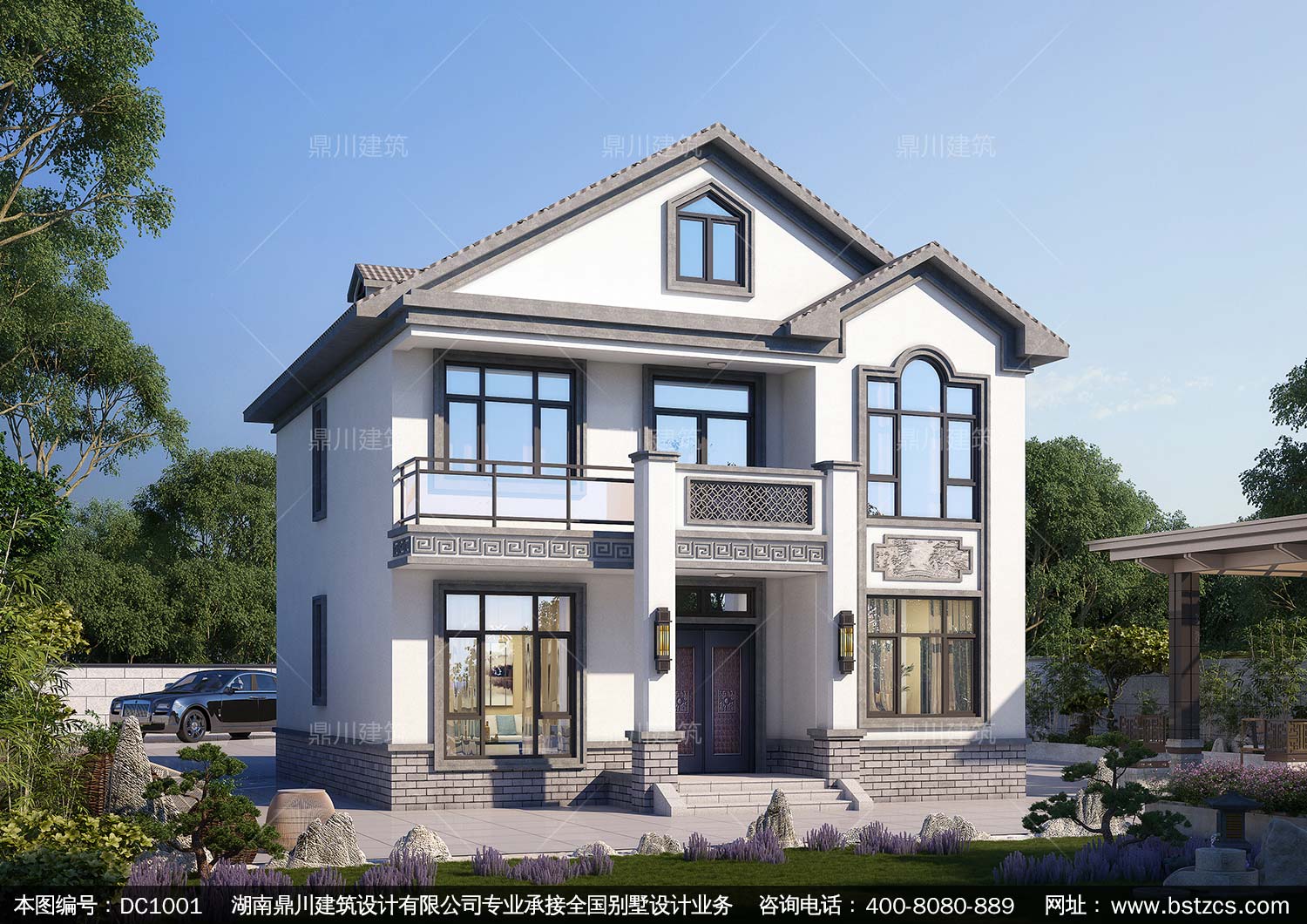 二層中式帶露臺別墅施工圖紙及效果圖_農村自建房設計,鼎川建筑