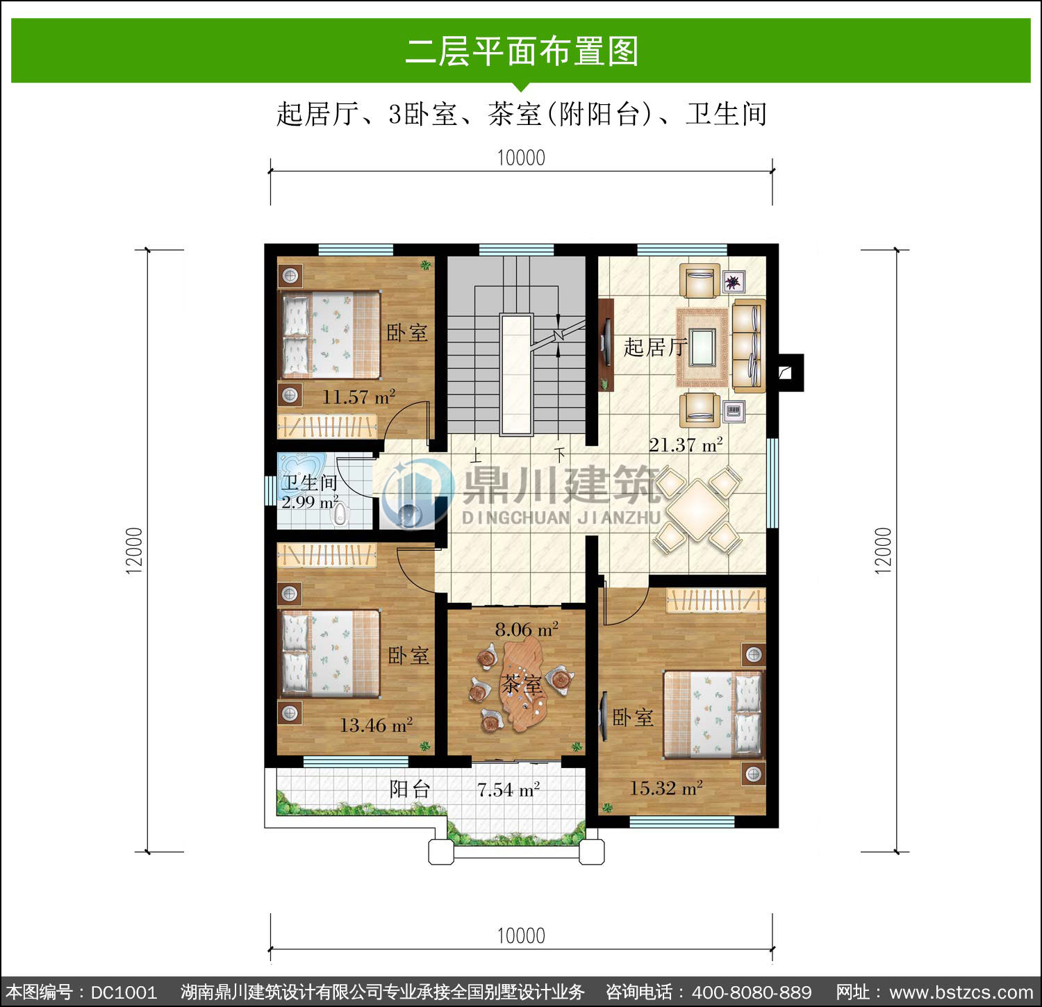 | 二 層: | 起居廳、3臥室、茶室(附陽臺)、衛生間 | |||