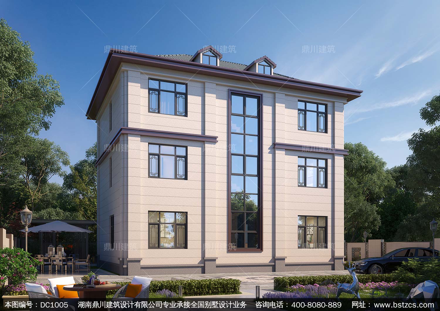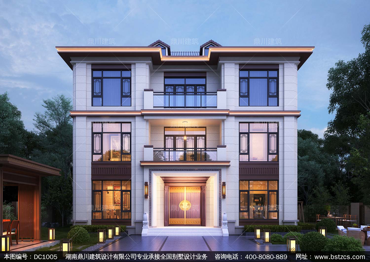 大氣三層新中式別墅設計圖紙及效果圖_農村自建別墅設計,鼎川建