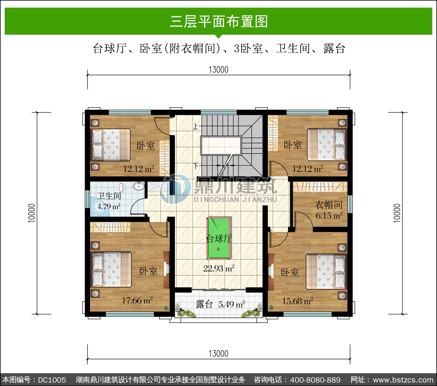 | 三 層: | 臺球廳、臥室(附衣帽間)、3臥室、衛生間、露臺 | |||