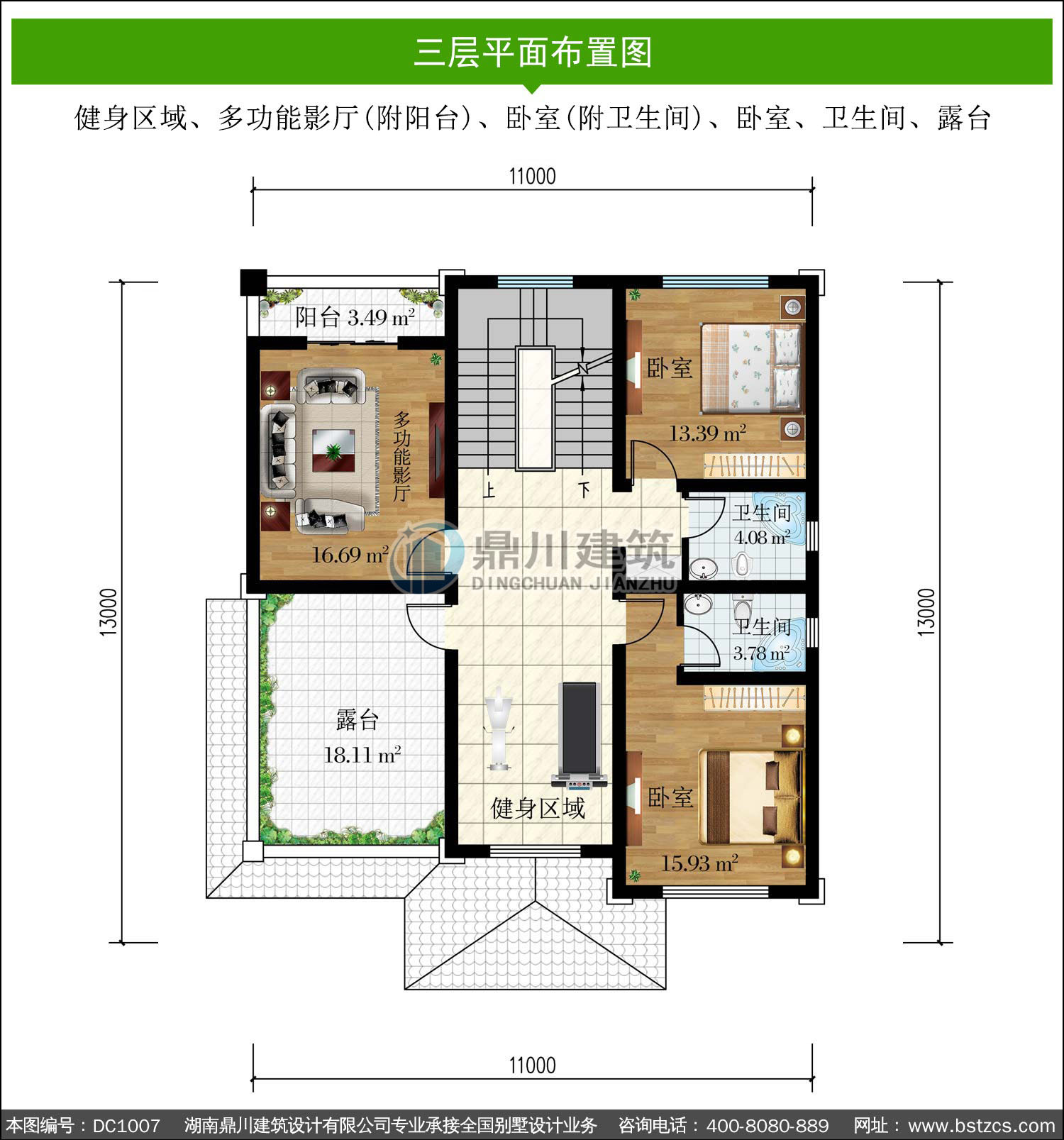 | 三 層: | 健身區(qū)域、多功能影廳(附陽臺(tái))、臥室(附衛(wèi)生間)、臥室、衛(wèi)生間、露臺(tái) | |||