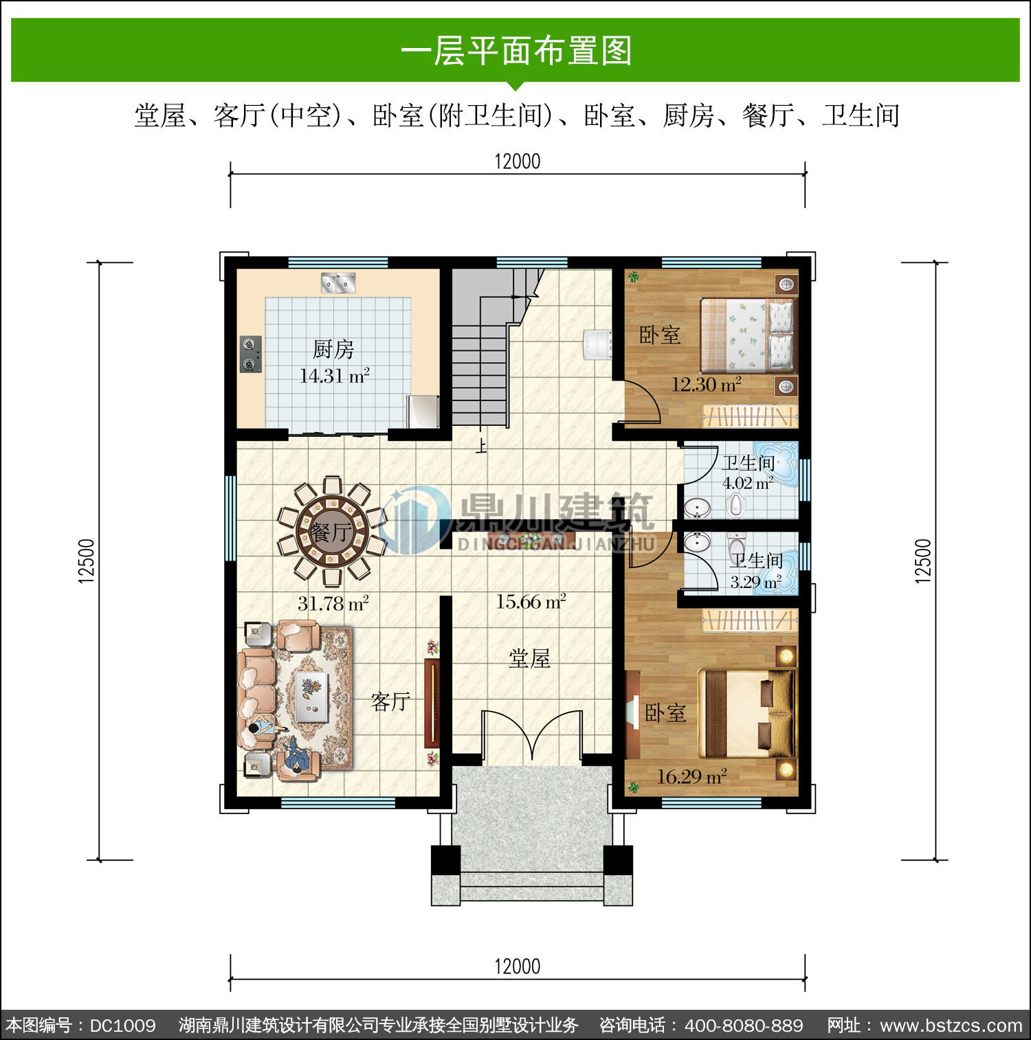 | 一 層: | 堂屋、客廳(中空)、臥室(附衛生間)、臥室、廚房、餐廳、衛生間 | |||